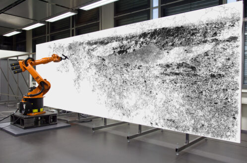Today we are working with a real industrial robot. Martina from the artist group robotlab (https://www.robotlab.de/) will give you a look behind the scenes and show you how she gets her robots to draw pictures or write texts.